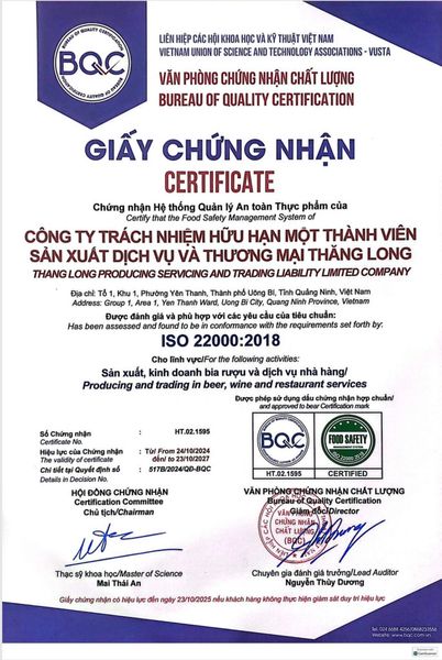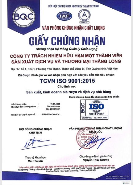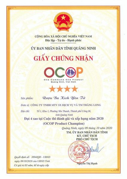 Giấy chứng nhận OCOP 4 sao Rượu ba kích Yên Tử